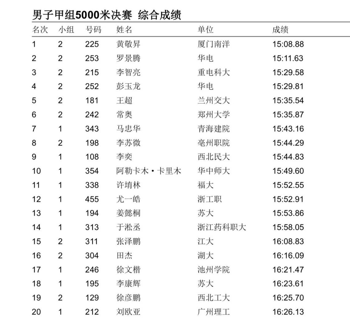 男子甲組5000米參賽隊員共41人