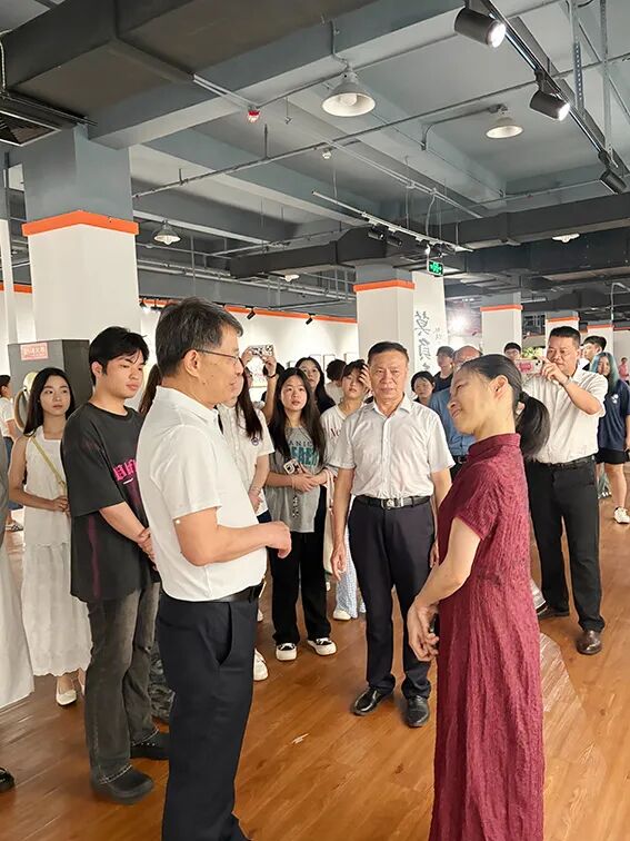 2025年5月24日,我校優秀校友、殘障女畫家林婕舉辦畫展,魯加升教授在活動現場與林婕親切交談