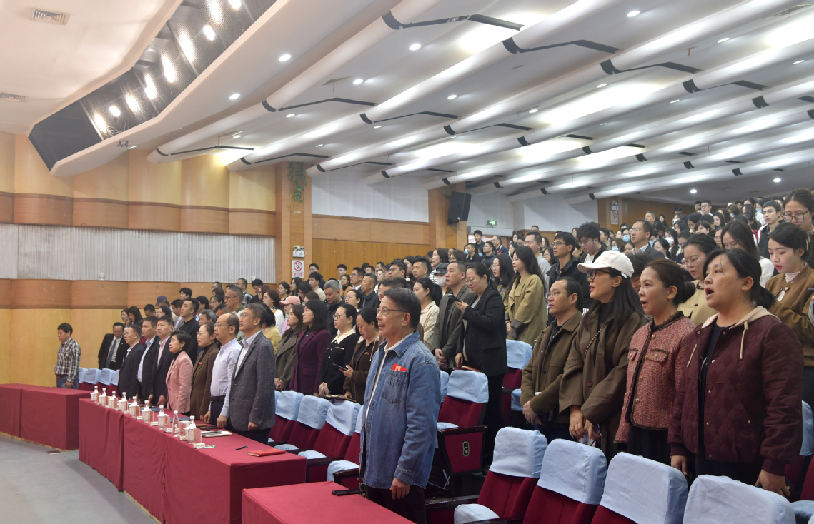 講座開始前,全體教職工起立合唱《廈門南洋學(xué)院校歌》,激昂嘹亮的歌聲響徹會(huì)場(chǎng),傳遞出南洋人奮發(fā)向上、團(tuán)結(jié)奮進(jìn)的精神力量。校歌作為我校大學(xué)文化的核心載體之一,以“雄鷹展翅、航船啟航”為創(chuàng)意意象,承載著學(xué)校“天天向上”的南洋精神和“愛與適合的教育”理念,既凝聚了學(xué)校的辦學(xué)初心,也成為傳承校園文化、凝聚師生共識(shí)的重要紐帶,為本次專題培訓(xùn)拉開了莊重而溫暖的序幕。